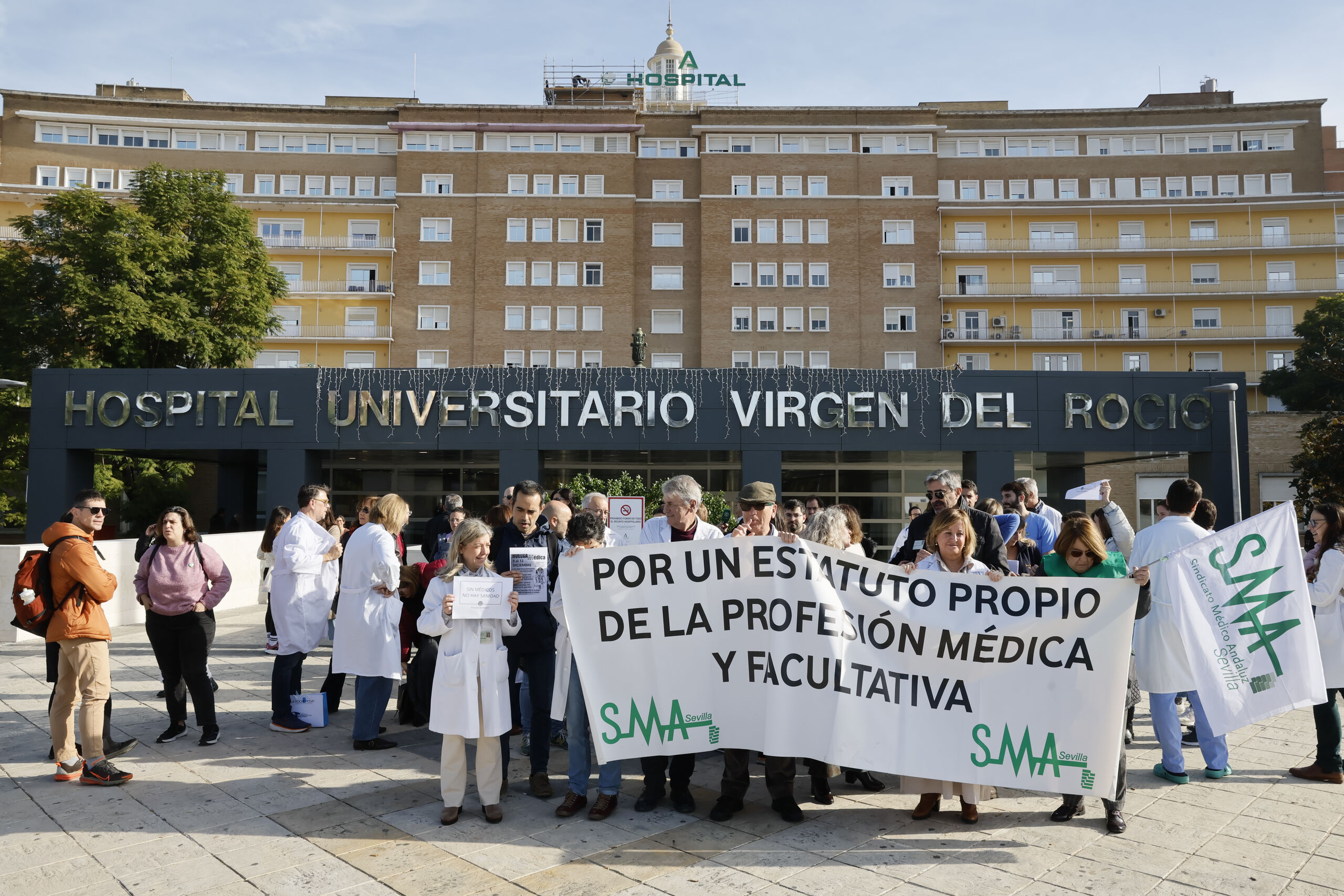 Manifestantes frente al Hospital Universitario Virgen del Rocío
