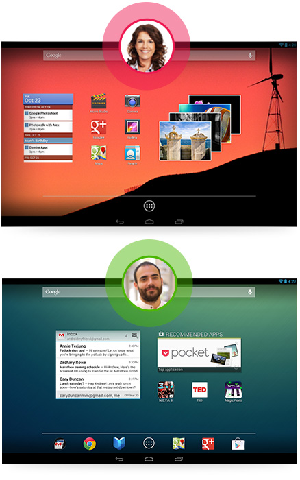 Una de las novedades de Android 4.2 será la opción de entrar con diferentes sesiones, de modo que varias personas puedan compartir cómodamente el mismo dispositivo.