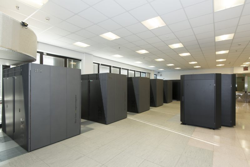 Cuatro de los superordenadores IBM entre los diez primeros son BlueGene/Q como este ejemplar de 1,38 petaflop/s y 131.072 núcleos, instalado en Alemania.