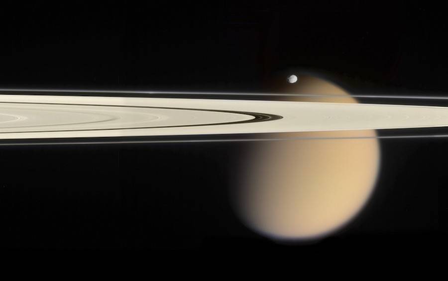 El origen de ese propileno se encuentra en la composición de la atmósfera de Titán. Su gas más abundante, igual que en la Tierra, es el nitrógeno, seguido del metano. Éste asume allí el papel de nuestro vapor de agua: se evapora de la superficie, forma nubes y llueve. Pero la luz del sol es capaz de descomponerlo y, cuando sus moléculas vuelven a reagruparse, dan lugar a distintas sustancias, según el número de carbonos que contengan.