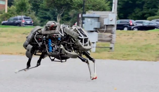 Boston Dynamics acaba de presentar este robot de cuatro patas, que además de sonar como una moto de cross, corre a toda velocidad. Es capaz de realizar diferentes movimientos con sus patas para correr de diferentes formas o girar.