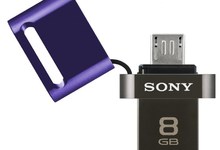 La memoria de 8 GB tiene un conector microUSB arriba y uno US| Sony