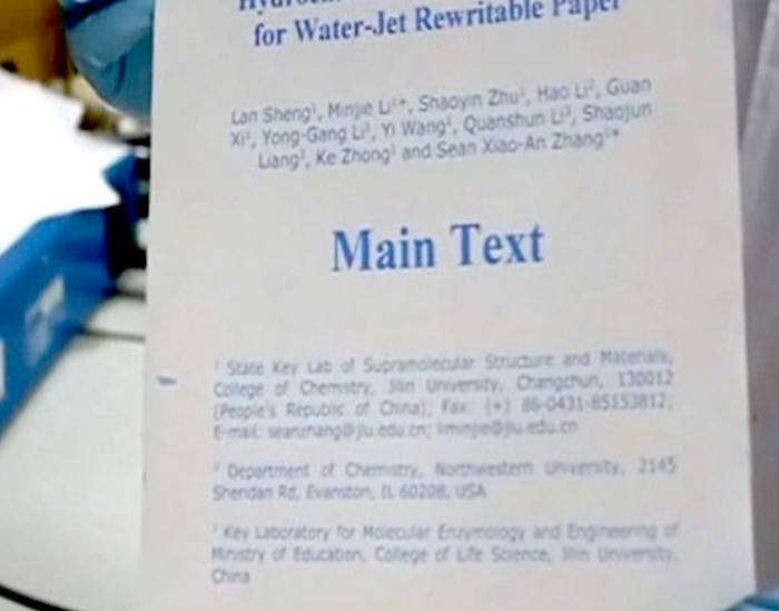 El profesor de la Universidad de Jillin Sean Zhang ha explicado que el papel es reutilizable porque se puede escribir sobre él y borrar el contenido varias veces. El papel se fabrica con tintes que se revelan al mojarse y cada hoja puede reutilizarse 50 veces.