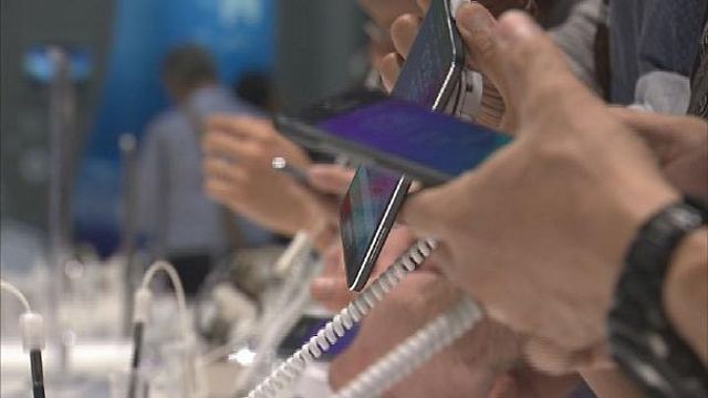 Samsung, el mayor competidor de Apple, presentó varios modelos nuevos sobre todo el Galaxy Note 4. Pantalla de 5,7 pulgadas, cámara de 16 megapíxeles. Mayor capacidad de almacenamiento y mejor batería. Este nuevo modelo saldrá a la venta en octubre. "El nuevo Galaxy Note 4 tiene una pantalla más grande. Se puede, por ejemplo, utilizar dos aplicaciones al mismo tiempo. Puedes, entre otras cosas, copiar directamente una foto en tu correo. El lápiz eletrónico es perfecto para tomar notas. También puedes convertir el teléfono en la pantalla de las gafas de realidad virtual. Se pueden ver películas y puedes utilizar los juegos. Finalmente hemos presentado el Galaxy Note Edge, un terminal con una pantalla en su lateral derecho en la que se puede trabajar con más información o tener una selección de tus aplicaciones favoritas", explica Patrick Povel, de Samsung.