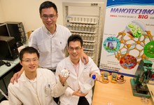 El profesor Chen (de pie) con dos miembros de su equipo. | NTU