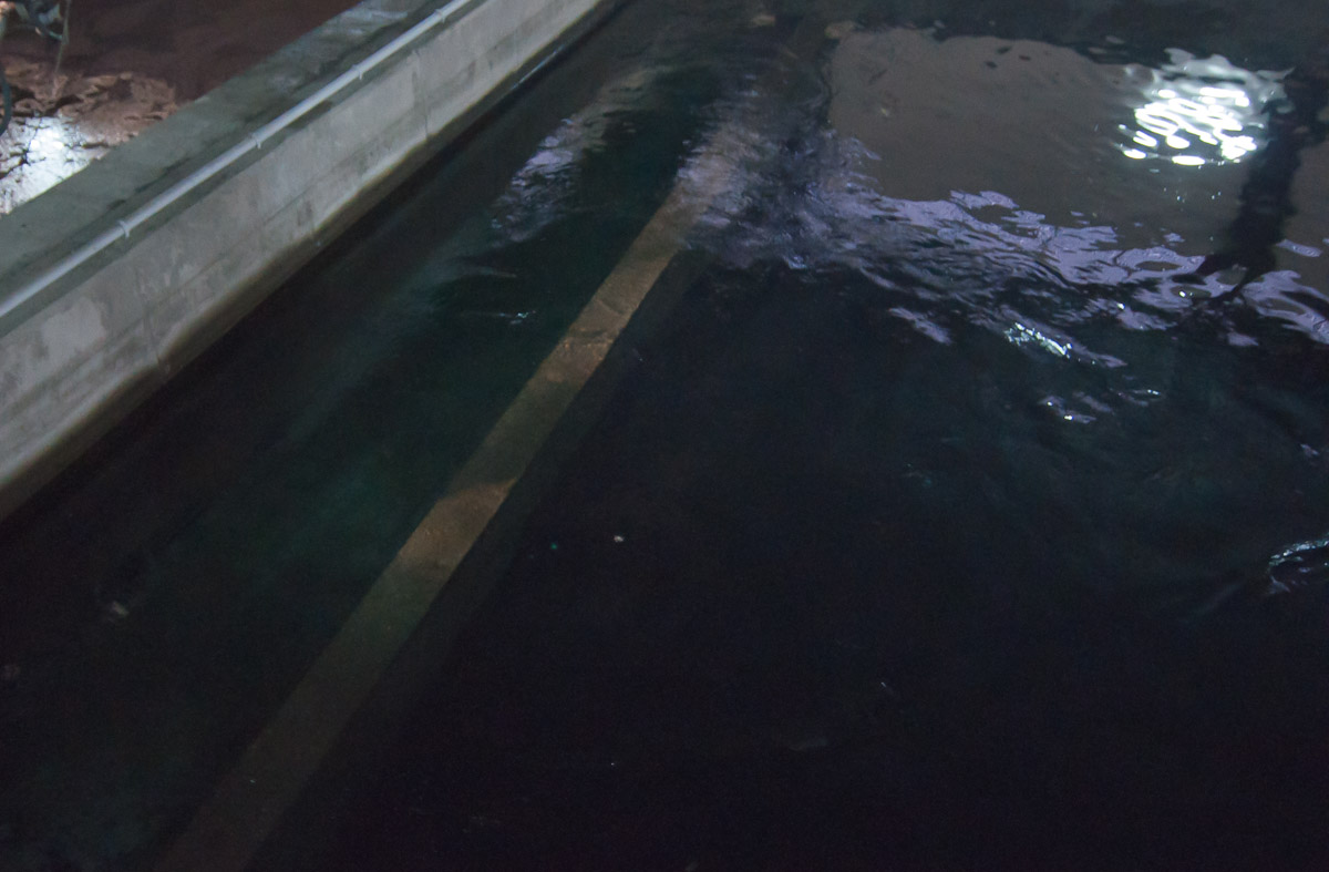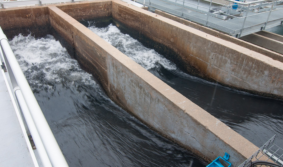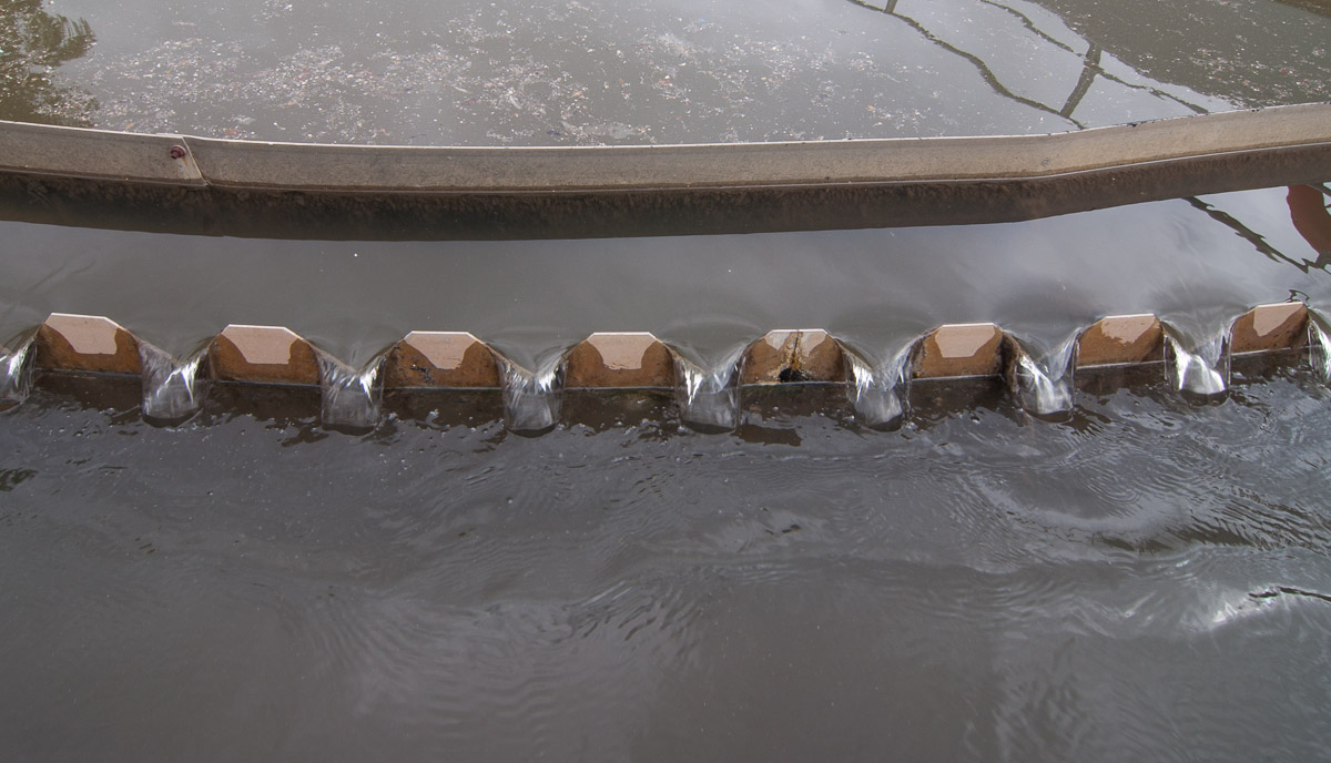 Después del primer enrejado el agua pasa a dos nuevos tanques en los que determinados elementos -por ejemplo, ciertas grasas- se van decantando, tal y como se ve a la derecha.