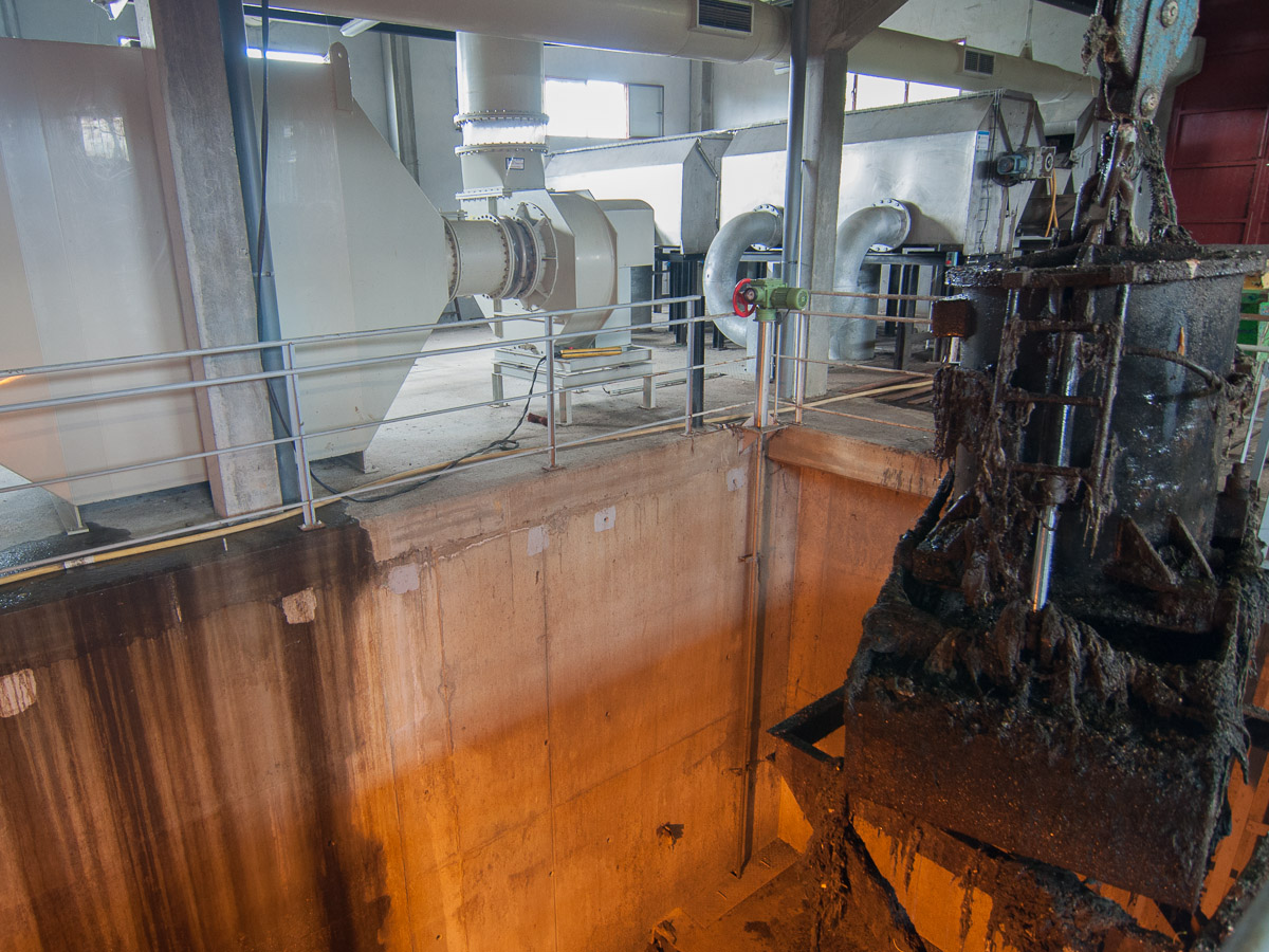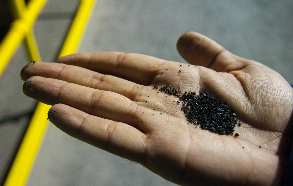 Y este es el aspecto que tiene el tanque de carbón activo cuando ya no le queda agua. El carbón se utiliza durante años y, además, después una empresa externa lo trata y puede volver a usarse unos años más.