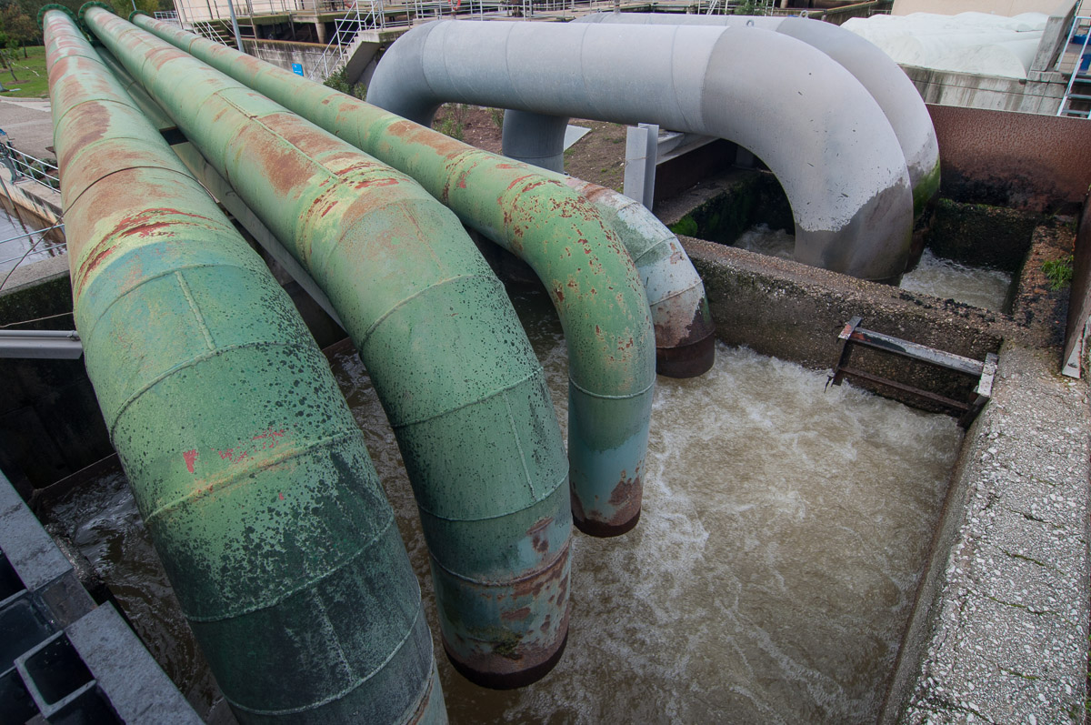 A través de estas grandes tuberías el agua inicia su camino. Una peculiaridad que sorprenderá a algunos es que es posible tomarla a distintas profundidades del embalse, dependiendo de la calidad del agua en cada momento y de las facilidades que ofrezca para el posterior tratamiento.