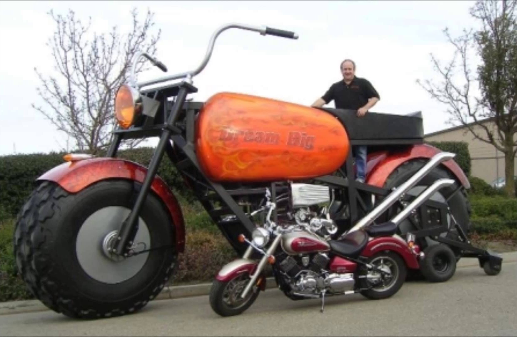 El norteamericano Gregory Dunham ha diseñado la Dream Big Bike. Mide de 3,42 metros de alto y 6,20 metros de largo. Con estos números ha sido incluida en el Libro Guiness de los Récords. Para mover las 2,94 toneladas de peso, utiliza un motor 8.2 litros V8 de 500 CV y utiliza unos neumáticos de 1,88 metros de altura. Su velocidad máxima es de unos 90 km/h.