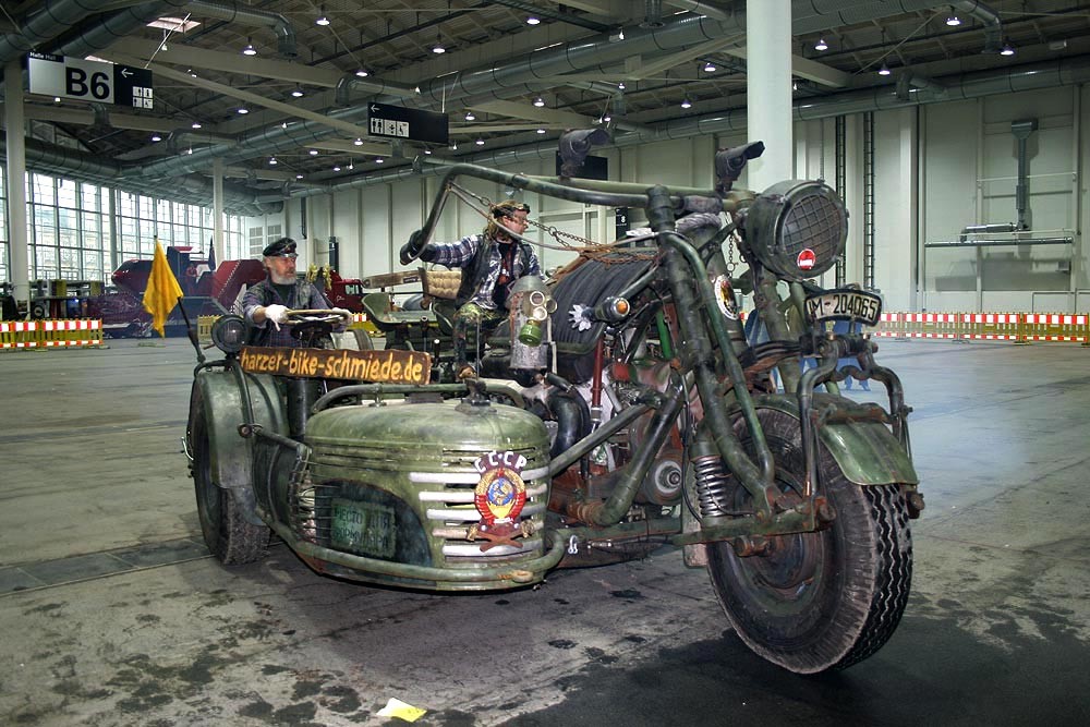 Construida por el alemán Tilo Niebel y su equipo, esta máquina se conduce con un manillar típico más una dirección adicional que se monta en el sidecar. La idea surgió cuando se toparon con el motor de un carro de combate y decidieron construir una versión libre de una super moto con sidecar. El motor pertenece a un tanque soviético T-55. Es un V12 de 620 caballos y 38.000 centímetros cúbicos. Su peso en seco es de 4.300 kilos y mide más de cinco metros.