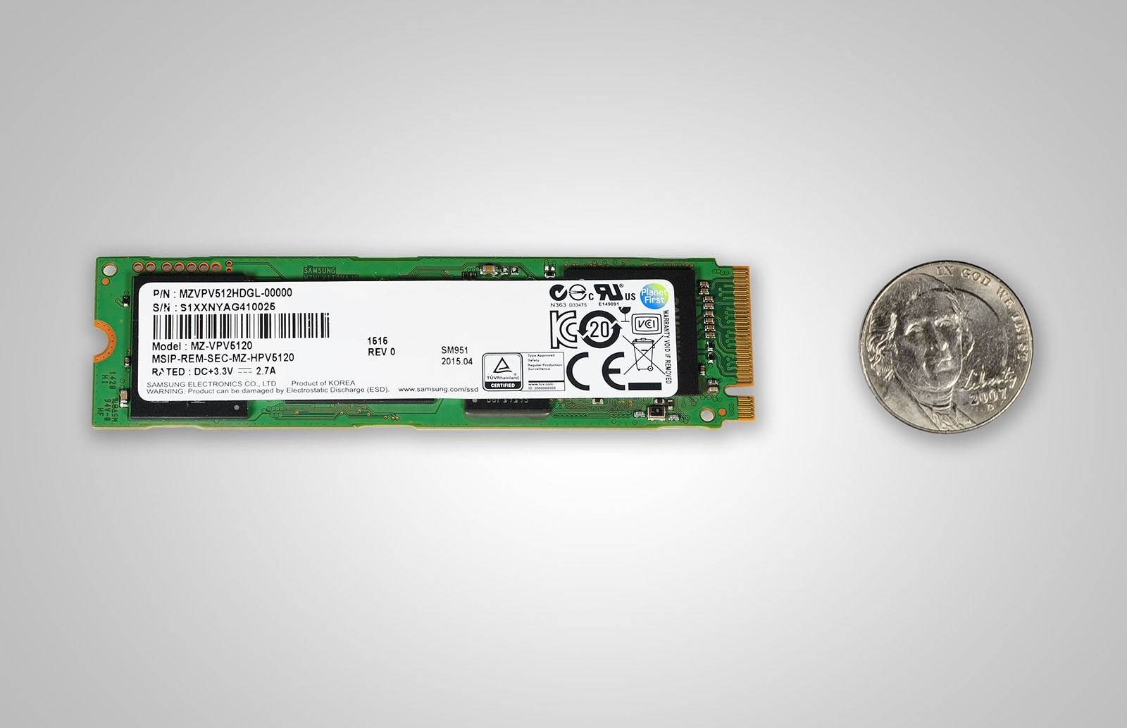 Estos discos de 128, 256 y 512GB no exceden los 4 milímetros de grosor y su peso no llega a los 7 gramos. Implementa el estándar NVM Express (NVMe), relativamente reciente y que permite disponer de un interfaz común para todos los discos SSD conectados a través de PCIe. Esto significa, por ejemplo, que basta con un controlador de dispositivo en el sistema operativo para todos los dispositivos que usen NVMe, al igual que sucede con los discos y memorias Flash que se conectan por USB gracias al estándar USB MSC.