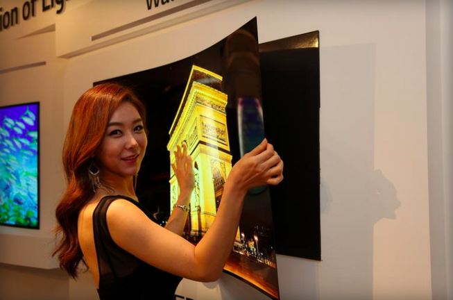 LG ha presentado el futuro de sus televisores: se despegan de la pared, se enrollan y se llevan de viaje. Las características son impresionantes: 55 pulgadas, tecnología OLED, 1.9 kg de peso y sólo 0.97 mm de grosor... ¡0.97mm de grosor! Esta extravagancia tecnológica no tiene precio; huele tanto a prototipo que LG ni se ha molestado en intentar valorar su viabilidad económica, como indica The Verge.