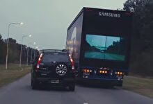 Los camiones tienen una cámara en la parte delantera de la cabina, y pantalla gigante en la trasera de los remolques
