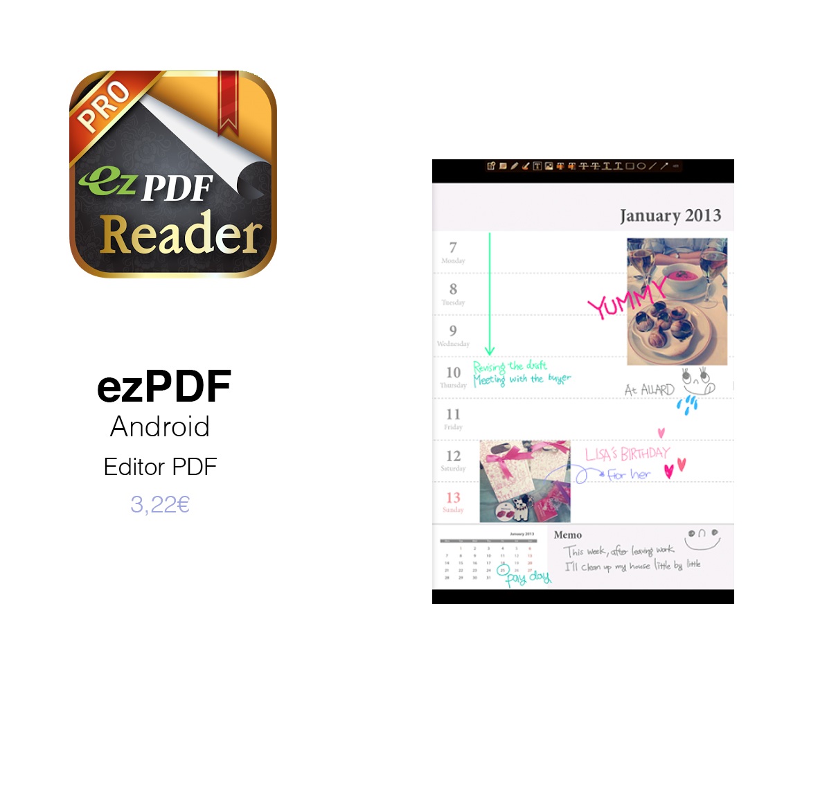 ezPDF. Dispone de muchas opciones para trabajar con nuestros archivos, como hacer anotaciones, notas, comentarios, subrayar, etc. La interfaz es sencilla y agradable haciendo muy cómoda la lectura de nuestros ficheros.