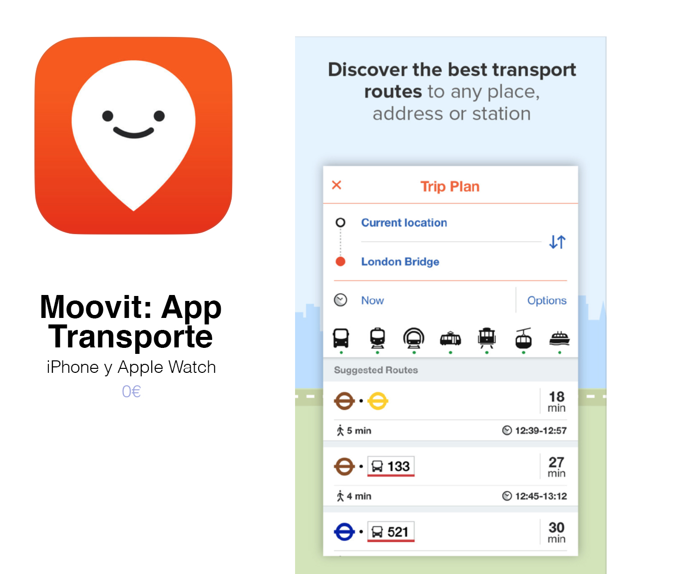 Moovit. Cuando se trata de transporte público Moovit es una de las mejores opciónes. Tendrás información a tiempo real de lo que tardarás en llegar a tu destino. Si activas las notificaciones tendrás toda la información si hay retrasos o problemas. Imprescindible si te mueves en transporte público.