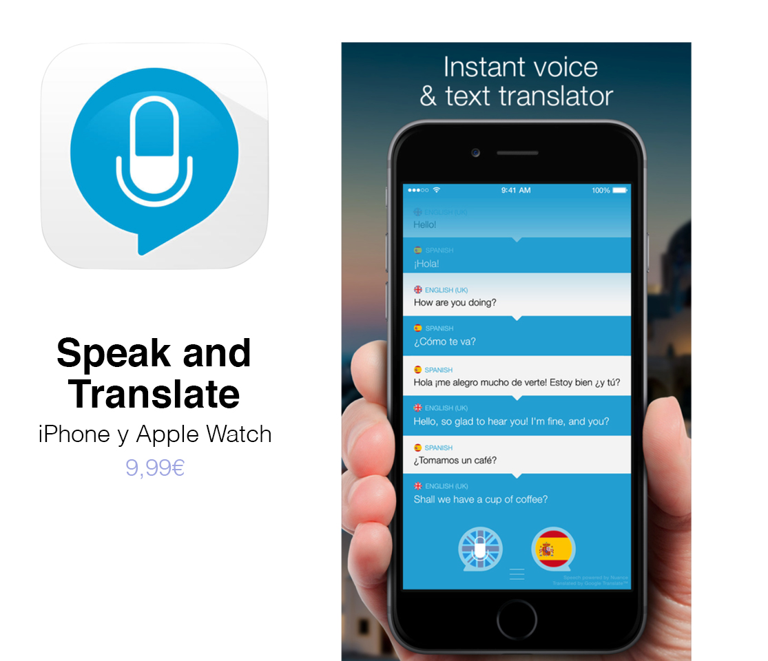 Speak and Translate. La mejor forma de entenderte si quieres una traducción simultanea. Posee 42 leguas diferentes. Sólo tienes que pulsar y hablar. Speak and Translate traduce instantáneamente y se activa para que el interlocutor te de la respuesta.