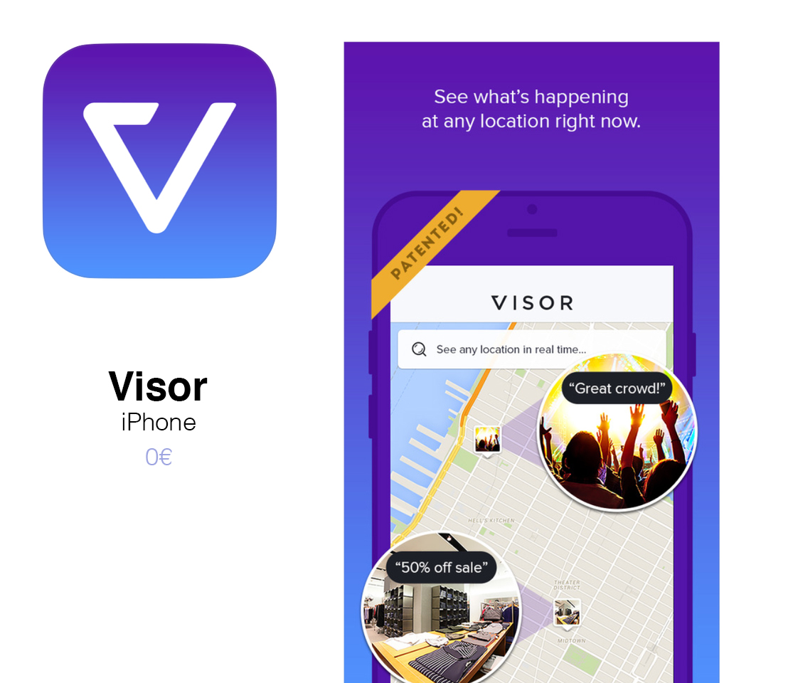 Visor. Con esta app puedes ver lo que sucede en cualquier parte del mundo a tiempo real. De un vistazo verás la cola de un evento, un local de moda, productos en una tienda o cualquier otra cosa que suceda. La mejor forma de estar informado de primera mano.