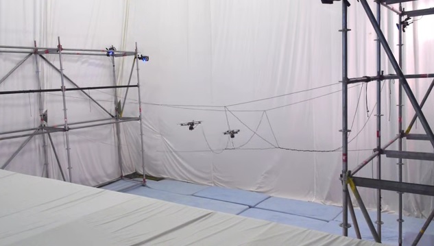 Estos drones vuelan de forma autómata controlados por un ordenador que tiene programado un algoritmo que calcula las trayectorias de vuelos de los drones durante todo el proceso de construcción del puente.
