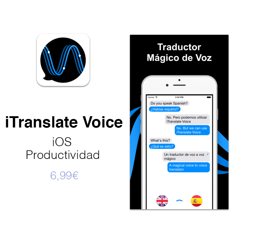 iTranslate Voice. Hablar con extranjeros por SMS o email será más sencillo con esta App que traduce simultáneamente hasta 42 idiomas por lo que las posibilidades de interacción con gente que no hable tu idioma son casi ilimitadas. La desventaja más evidente que tiene esta App es el precio, 6,99 €.