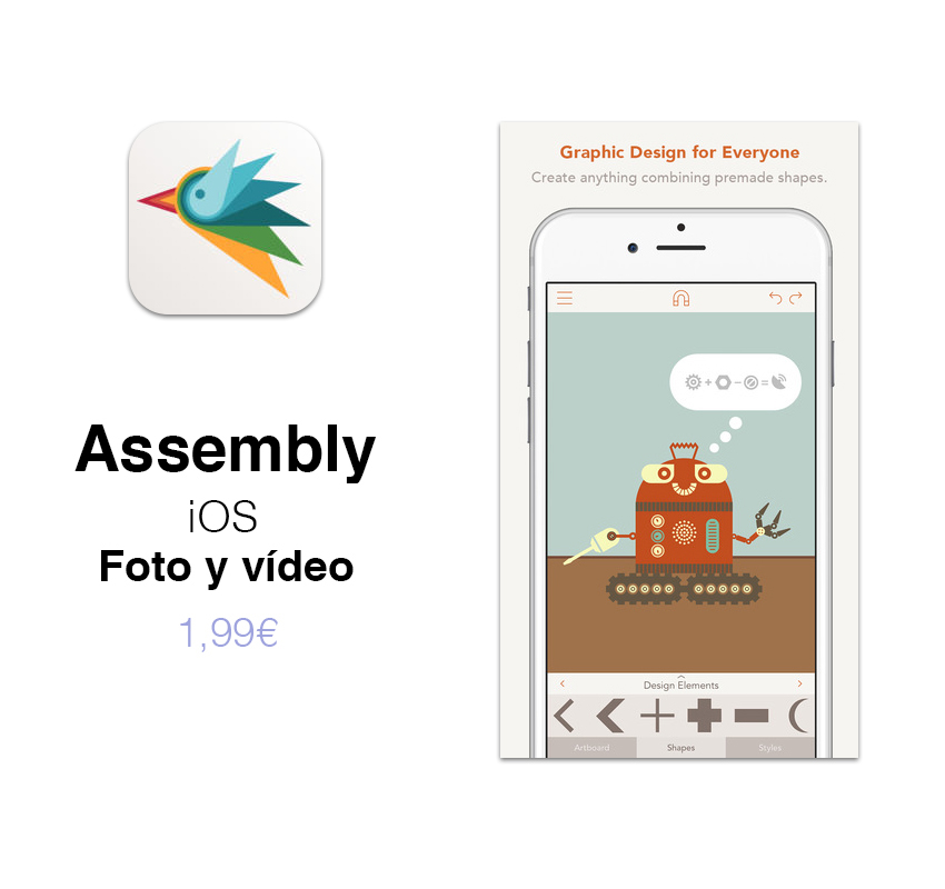 Assembly Esta App tiene pocas semanas pero su diseño y posibilidades llaman poderosamente la atención. Con Assembly podrás diseñar tus logos y hacer tus pinitos en el diseño gráfico.