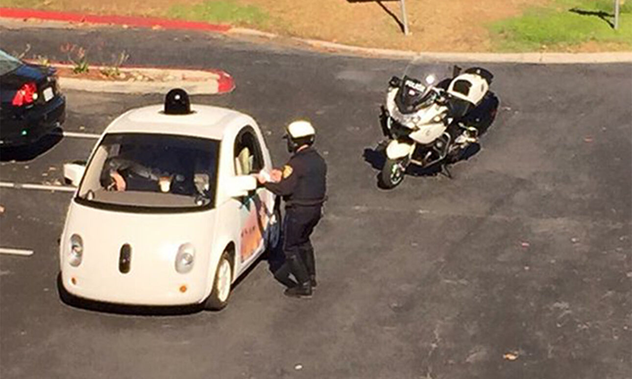 Los coches autónomos tienen tanto cuidado que el mes pasado un policía de tráfico californiano tuvo el honor de ser el primero en parar a un coche autónomo. El vehículo de Google iba a 40 kilómetros por hora en una zona limitada a 55 km/h, creando una caravana detrás de él. No le multó, entre otras cosas porque tampoco sabía a quien, pero amonestó a los ingenieros que iban en el coche recordándoles que ser demasiado cauteloso también es malo. "Lo correcto hubiera sido salirse al arcén y permitir que el tráfico les adelantara", asegura el sargento del departamento de tráfico de la Policía.
