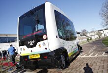 Vista frontal del vehículo. | Wepod Holanda prueba el primer autobús eléctrico sin conductor J. Romero El nuevo medio de transporte es una de las esperanzas para luchar contra la contaminación urbana.