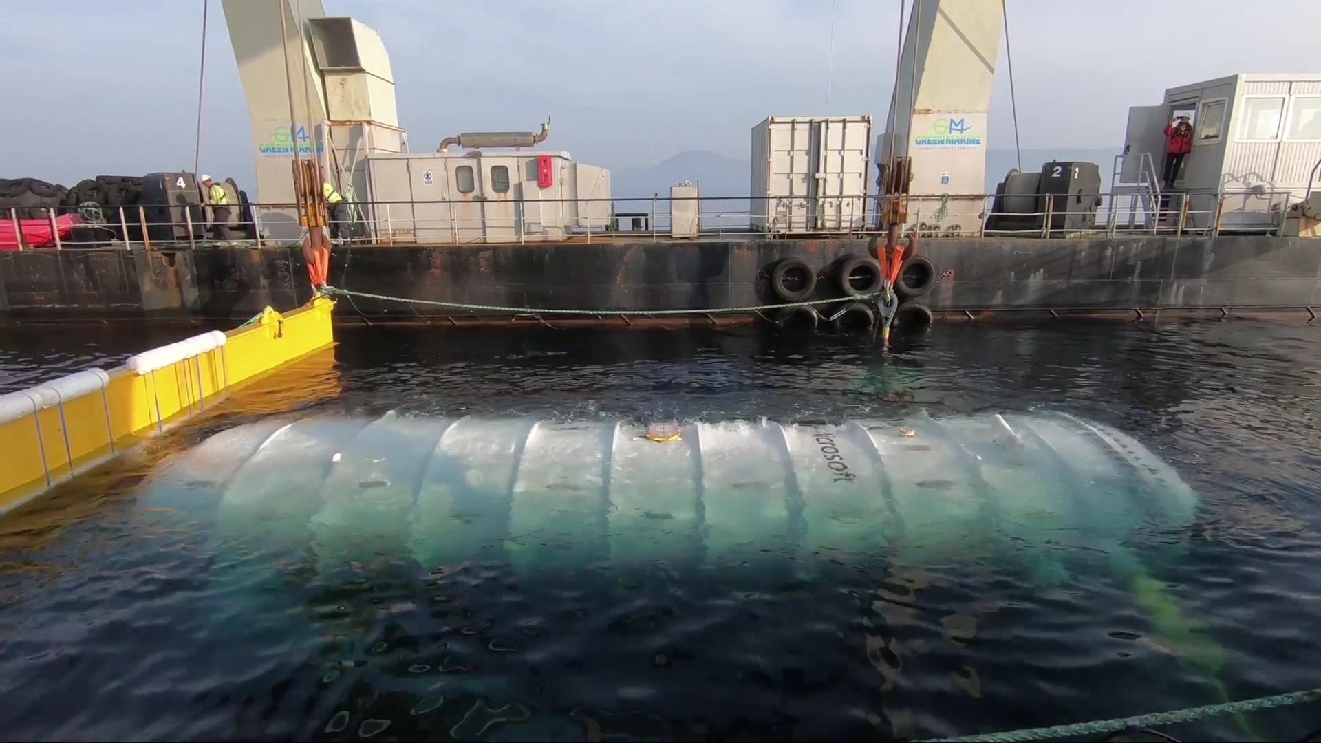 Así ha sido el momento en el que el contenedor del centro de datos ha sido sumergido.