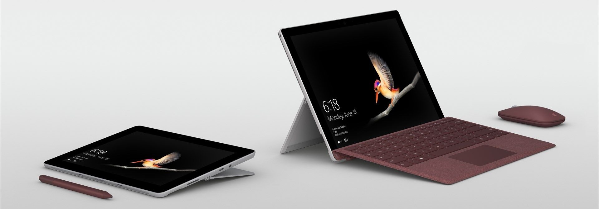 Microsoft ha presentado oficialmente Surface Go, la tableta "más pequeña, liviana y económica" de la gama Surface hasta el momento, según afirma la compañía en un comunicado. Surface Go tiene un peso de 521 gramos y 8,3 milímetros de grosor con una pantalla PixelSense de 10 pulgadas y relación aspecto 3:2, diseñada para su uso junto al Surface Pen, un lápiz con hasta 4.096 niveles de sensibilidad a la presión que permite tomar notas, dibujar y diseñar.