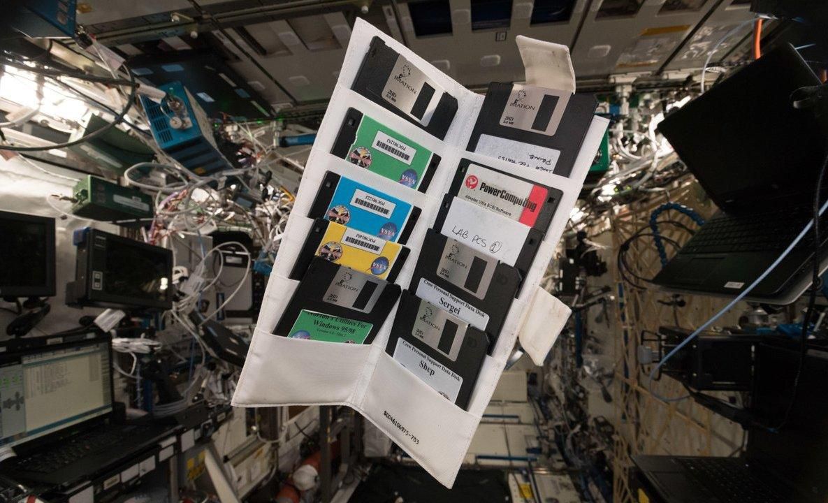 El astronauta alemán de la Agencia Estatal Europea Alexander Gerst, quien ahora mismo reside en el interior de la Estación Espacial Internacional, ha publicado una fotografía de los disquetes encontrados a través de su cuenta de Twitter.