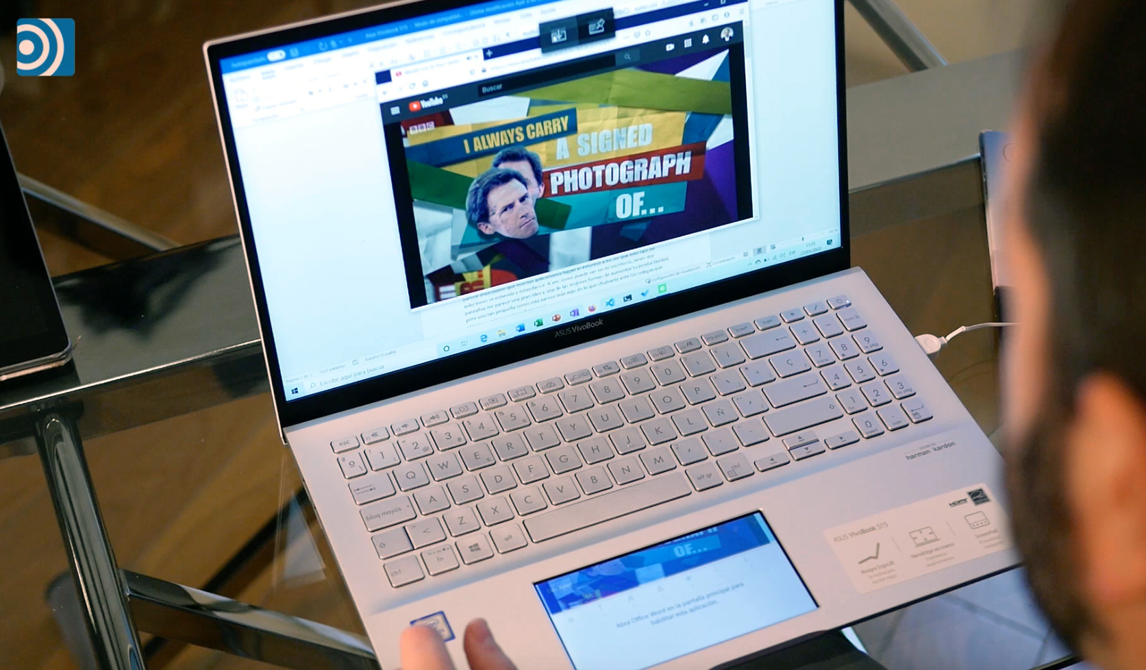 Pero vamos a hablar del trackpad, que lo que todos estábamos esperando. Lo primero que hay que decir es que como trackpad puro y duro es excelente; reacciona bien y con precisión a nuestros dedos y gestos, y que tiene un click de lo más satisfactorio. El problema es que estamos pagando un plus porque además sea una pantalla de 5,65 pulgadas y no estoy seguro de que merezca la pena. El Asuspad 2.0 te permite utilizarlo de segunda pantalla, para lo cual necesitaremos de un ratón externo porque, en fin, nos quedaremos sin trackpad porque lo que hagamos con los dedos se reflejará en la propia pantalla del trackpad, y no en la principal. La idea es que podamos poner ahí algunas aplicaciones, por ejemplo un vídeo de YouTube, o Spotify, mientras seguimos teniendo la pantalla principal para hacer otras cosas, pero el problema ahí es que las aplicaciones de Windows no están pensadas para este tamaño de pantalla y no se ven muy bien, además que de que frecuentemente encontraremos que la barra de tareas del trackpad dificulta el acceso a, por ejemplo, los controles de audio de Spotify.