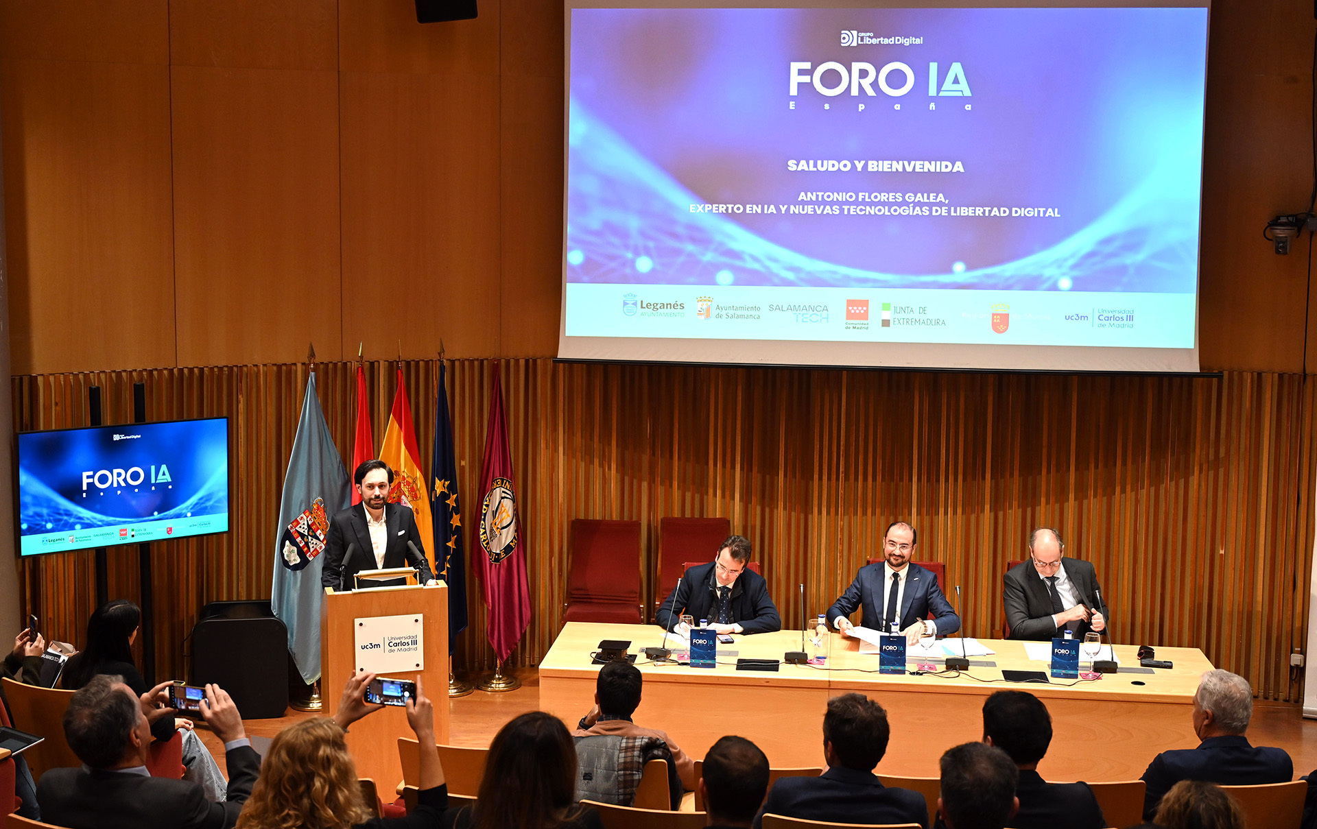El I Foro IA España, un evento organizado en la Universidad Carlos III de Leganés, por iniciativa de Libertad Digital y el Ayuntamiento de Leganés, ha marcado un punto de encuentro crucial para discutir el rol y el futuro de la inteligencia artificial en la sociedad. Con la presencia de destacados expertos y autoridades en el campo, el foro se ha inaugurado con palabras de Antonio Flores Galea, un renombrado experto en tecnologías emergentes y profesor en la Universidad Francisco de Vitoria. Flores Galea ha resaltado la importancia creciente de la inteligencia artificial en la transformación digital global. "Espero que tengáis una visión al cabo de la jornada muy interesante. Es un momento importante para entender y aprender lo que se está haciendo", ha declarado Flores Galea, poniendo énfasis en cómo la IA está remodelando los paradigmas en educación y administración pública.
