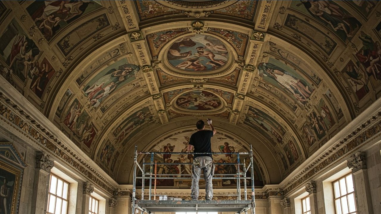 - Tacto, relieve y materialidad a corta distancia: la pátina y la textura auténticas siguen siendo ámbitos del oficio manual. La máscara devuelve la apariencia original para ver la obra expuesta a un metro de distancia, no para ser vista a muy corta distancia.