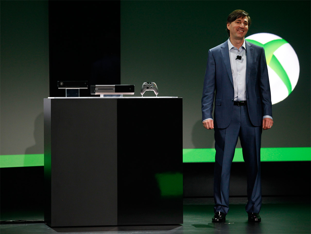 Pocos minutos después de comenzar la conferencia, Don Mattrick, presidente de la división de Xbox en Microsoft, presentaba la nueva Xbox One (en el centro) junto al mando y el nuevo Kinect (a la izquierda).