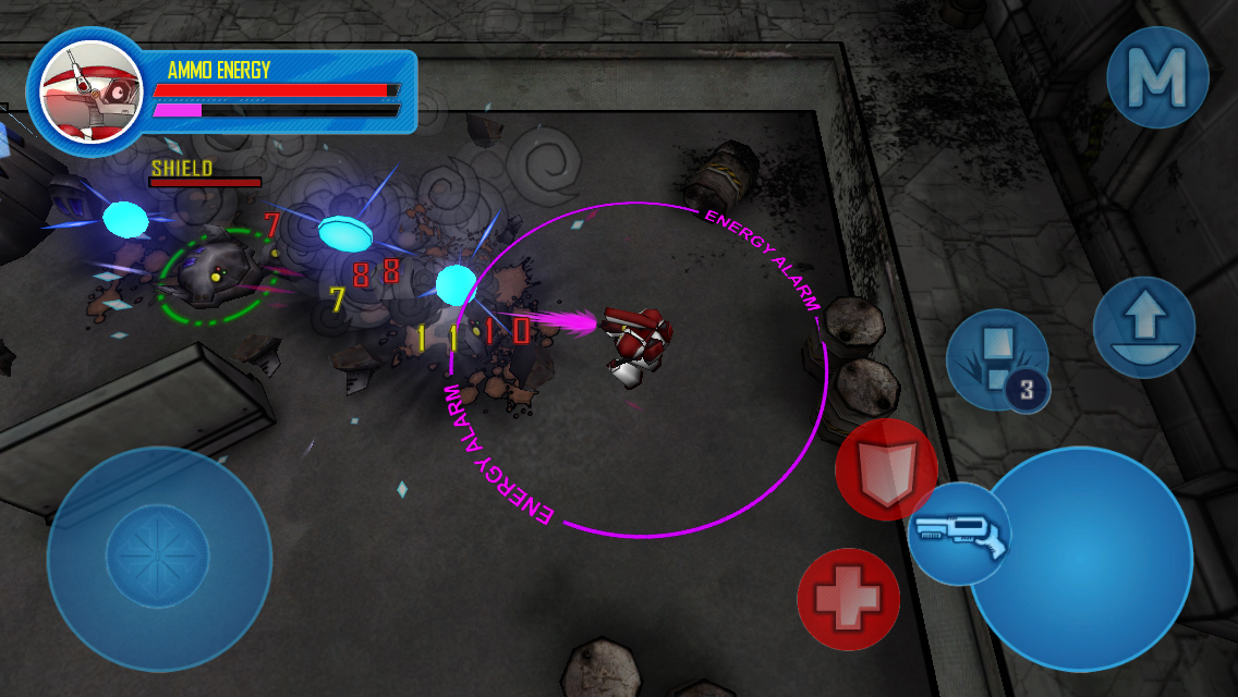 El videojuego se maneja con dos joystick virtuales situados en las zonas inferior izquierda y derecha de la pantalla. Con el primero moveremos el personaje, mientras que el segundo nos servirá para controlar la dirección de disparo y poder utilizar habilidades extra, que van desde saltar a lanzar misiles o poner minas para acabar con nuestros enemigos.