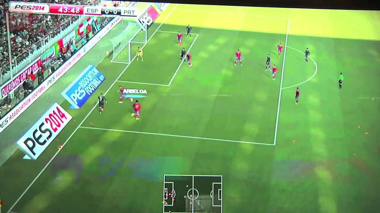 Un partido en el PES 2014 entre España y Portugal grabado en la feria Gamescon 2014 el 22 de agosto de 2013, un mes antes del lanzamiento.