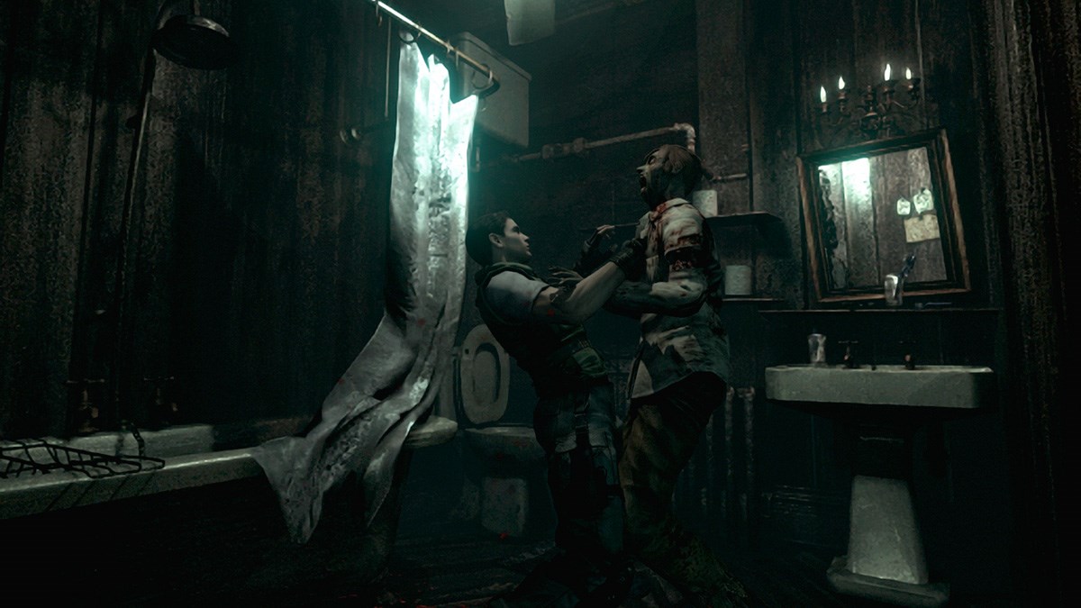 La experiencia de terror también se ha mantenido intacta. Da igual las veces que hayamos recorrido los pasillos de la mansión, las ocasiones en las que nos hemos enfrentado a los perros y zombis o que prácticamente tengamos todas las soluciones de los puzles en la cabeza. La atmósfera continúa interpretando el papel de un invitado de lujo dispuesto a aterrorizar al jugador como si fuera la primera vez, y lo logra exactamente igual que hace algunos lustros. La solución de las puertas para los tiempos de carga, tan aplaudida en su momento, se ha tornado en transiciones que continúan generando la misma sensación de inquietud en el jugador y cada paso sigue estando cargado de incertidumbre y temor, algo que determina la inmejorable forma en la que se ha conservado el diseño del clásico durante todos estos años.