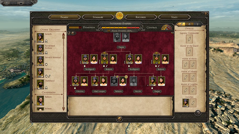 Mención especial también para nuestros generales y ejércitos, los cuales han visto reformado su árbol de habilidades con una vertiente similar al desarrollado en entregas como Total War: Shogun II. Tendrán algunas habilidades especiales y el jugador podrá adaptar los puntos de habilidad a su estilo de combate; ya sea priorizando el combate de proyectiles, las cargas de caballería o una férrea defensa de infantería. Respecto a la pestaña de la familia y al árbol de tecnologías, también se ha realizado una gran renovación. Ahora representa el árbol con nuestros herederos e hijos, con los generales a la izquierda fuera de él; los cuales, como siempre, podrán ser adoptados en la familia.