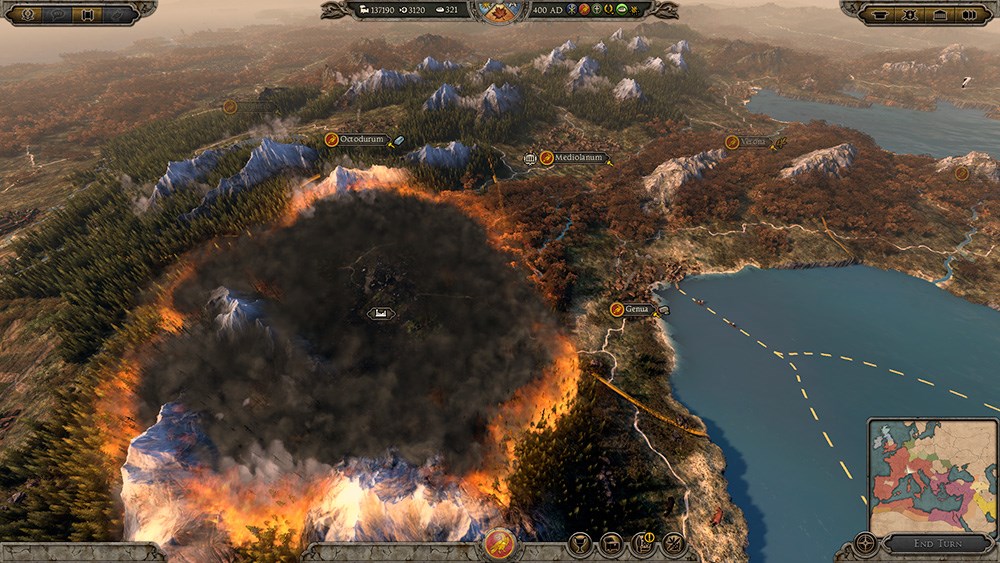 Y de cambios ha venido surtido este Total War: Attila. Es el turno del mapa de batalla, el cual también ha sufrido un concienzudo lavado de cara con nuevos efectos en el entorno. El más notable se lo apunta el fuego, que de nuevo se torna como un elemento crucial en las batallas y más aún en los asedios; dado que ahora se propagará como un infierno por nuestras ciudades, si no tenemos cuidado minará la moral de todo aquel que se encuentre cerca de elemento, sin duda, un cambio que permite volver las tornas a favor del jugador si lo emplea adecuadamente.