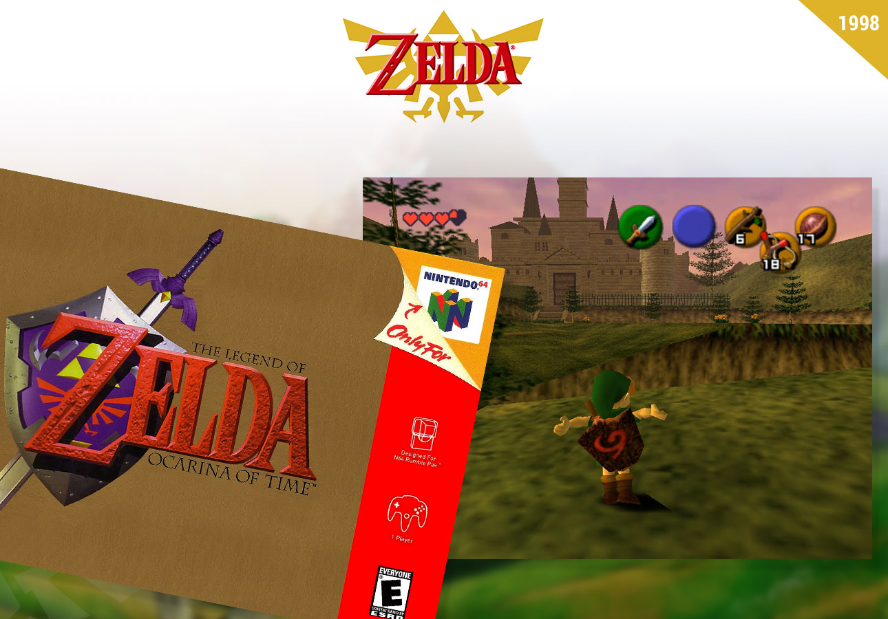 Considerado por muchos como el mejor videojuego de la historia, The Legend of Zelda: Ocarina of Time, llegó a la consola Nintendo 64 rompiendo moldes en muchos aspectos. Se trata del primer juego de la saga en incorporar gráficos 3D, y su concepción de mundo abierto, con gigantescos mapeados, lo convirtieron en poco menos que una leyenda de la historia del videojuego.