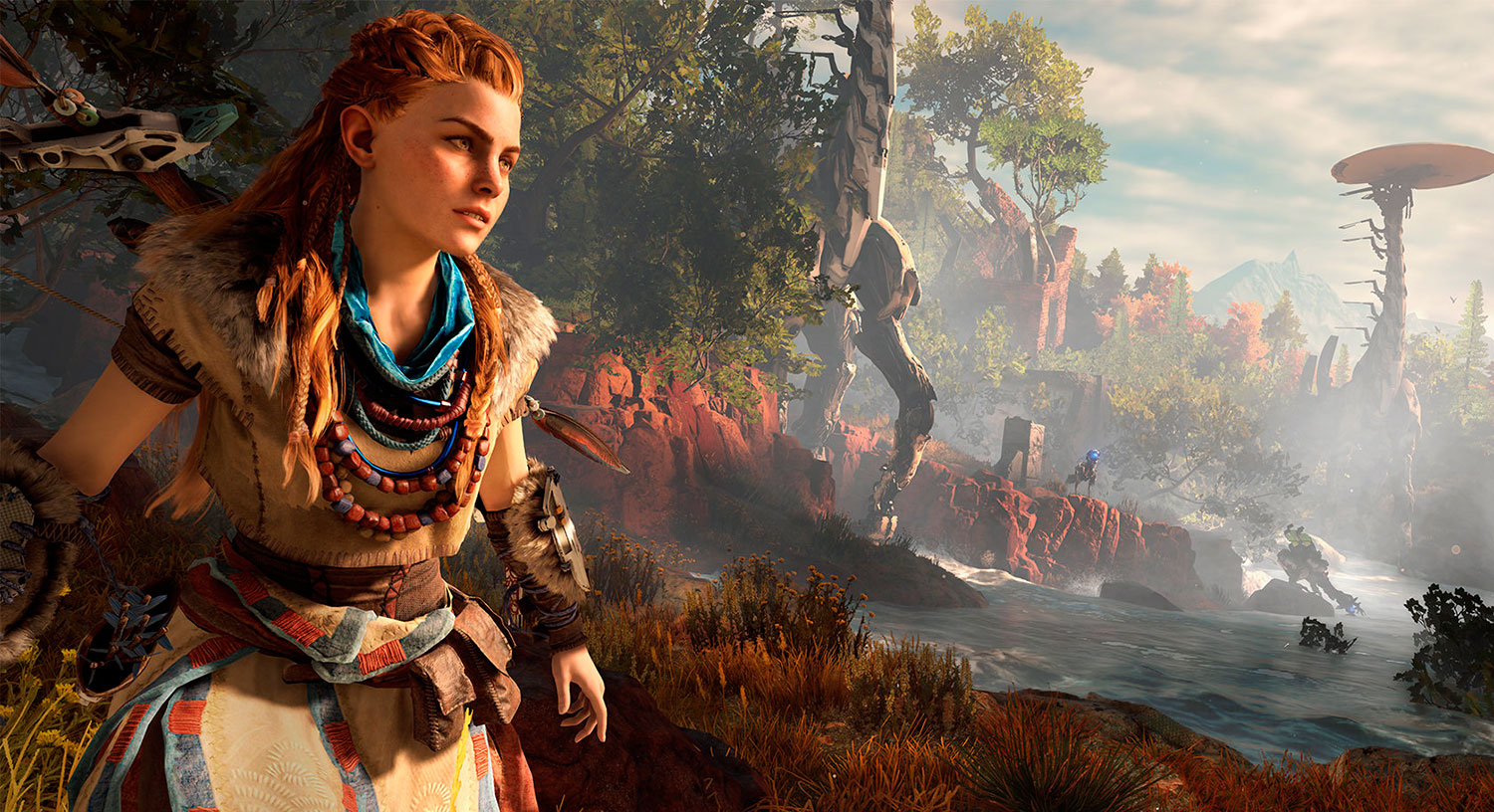 En un primer momento el juego ofrece una imagen pintoresca, con bellos paisajes ocupados por bestias robóticas dotadas de características muy familiares, incluso cumplen con funciones que rápidamente se asocian con la especie que emula. Por ejemplo, sin querer desvelar nada sobre la naturaleza de las bestias, hay una especie de exploradores que si detectan la presencia de un elemento extraño en el área, emiten un sonido para que todos los robots cercanos reciban una alerta. Se trata de la breve relación entre presa y cazador, entre la víctima y el depredador, exactamente igual que en la vida real. Lo que tenemos aquí es, básicamente, un gran paseo por la naturaleza de unos seres robóticos que dominan tierra y cielo. Hay representados diferentes animales, cada uno con una serie características propias que en conjunto suponen la amenaza superior, ya que son el motor de un ecosistema que pone a las criaturas en confrontación directa con el ser humano.