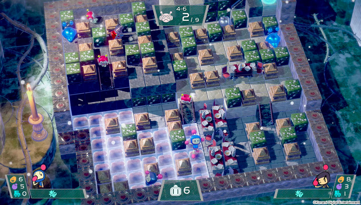 Cuando el tiempo se está agotando, comenzarán a caer Bloques de Presión que irán llenado el escenario, empezando desde los bordes y avanzando al centro. Si te aplasta uno de estos bloques, se acabará la partida. Una vez que termine el combate, se mostrará la pantalla de resultados. Los jugadores aparecen ordenados por número de victorias, y reciben PB de acuerdo a dicha clasificación. Dependiendo del resultado, será promovido o degradado a una liga distinta.