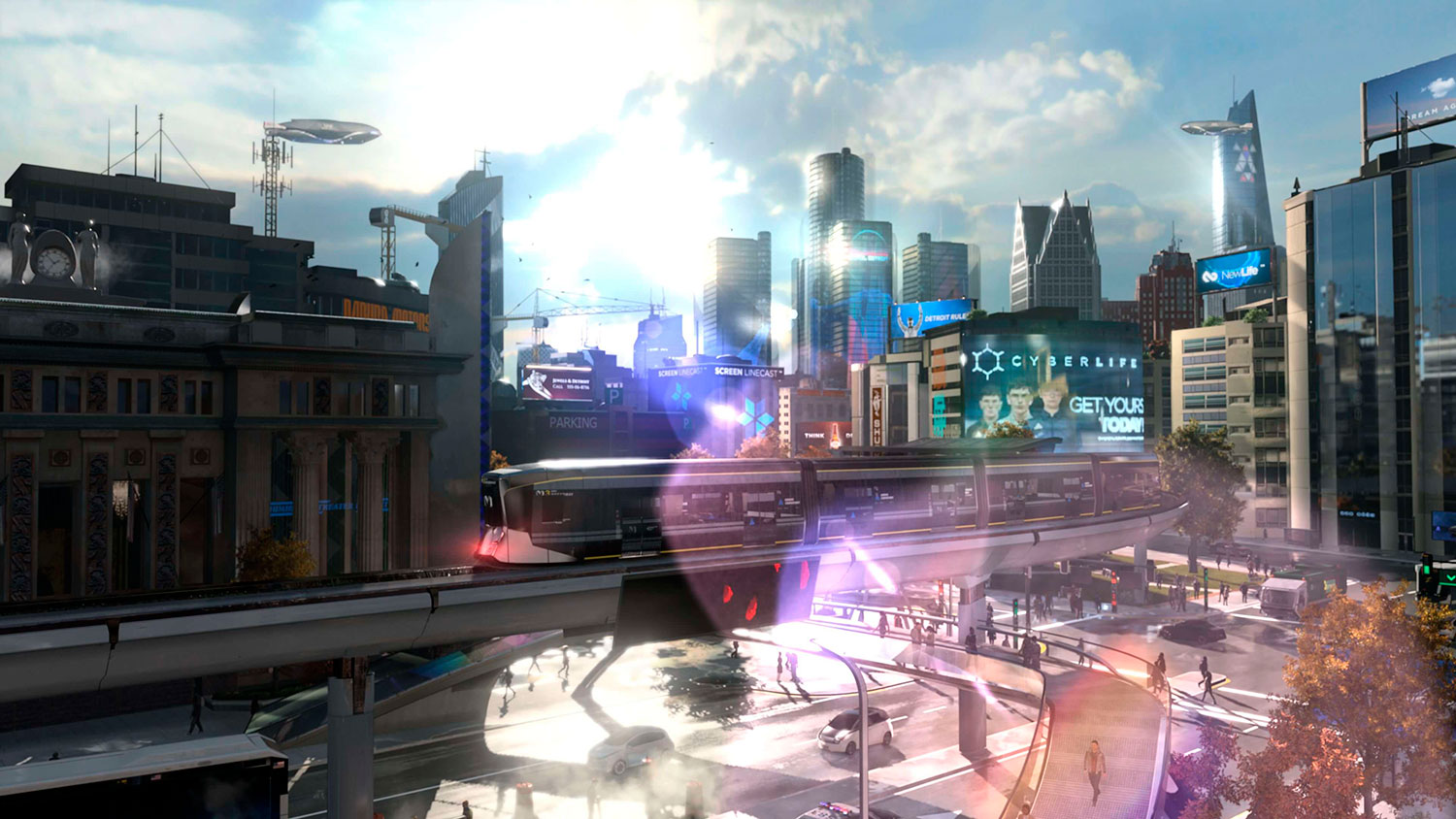 Sin duda, el apartado gráfico es otra una de las bazas indudables de Detroit y los resultados tampoco se podrían catalogar en el mismo sentido sin la participación del nuevo motor de Quantic Dream, ahora responsables de uno de los títulos más bellos a nivel plástico de la generación. Las expresiones faciales recogidas de las magníficas actuaciones de actores como Jesse Williams en el papel de Markus, Clancy Brown como el compañero de Connor y Valorie Curry en el papel de Kara, o la ambientación extremadamente fotorrealista, nos ayudan a crear relaciones más cercanas, que incluso pueden traspasar las emociones que es capaz de transmitir una fría pantalla. El detalle visual del juego bordea la perfección y ayuda a construir el clima cinematográfico que tanto tiempo han soñado en Quantic Dream. La desarrolladora ha pretendido crear un mundo creíble desde el punto de vista narrativo, pero el fotorrealismo gráfico realmente es la guinda del pastel en lo referido a la credibilidad de la historia. Los efectos de profundidad de campo, la iluminación global, las texturas de alta resolución, los efectos de luces de altísima calidad, las cortinas de lluvia y nieve, la calidad de efectos en la piel, entre otros elementos, han sido capaces de crear en combinación una ambientación con la que es imposible no llenarse los ojos.