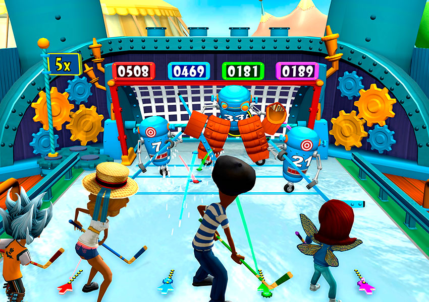 Carnival Games no esconde, en ningún momento, sus intenciones: quiere que juguemos el máximo tiempo posible y que lo pasemos bien mientras tanto. De hecho, a diferencia de otras propuestas del género, hay que ir desbloqueando minijuegos utilizando los tickets de feria que obtenemos en las propuestas iniciales. Es decir, aunque se trata de un trámite, no tendremos acceso a todo el contenido desde el principio, sino que iremos desbloqueándolo paulatinamente. La característica fundamental es que siempre participan cuatro usuarios –sean humanos o no– en los juegos, lo que implica algunos matices con otros jugadores que gestionaremos (de una forma u otra.) Tirar una bola en una superficie llena de cubos de diferente color, disparar a unas dianas o hacer unos home run en la prueba de béisbol son algunas de las pruebas iniciales necesarias para desbloquear los títulos predecesores de cada categoría.