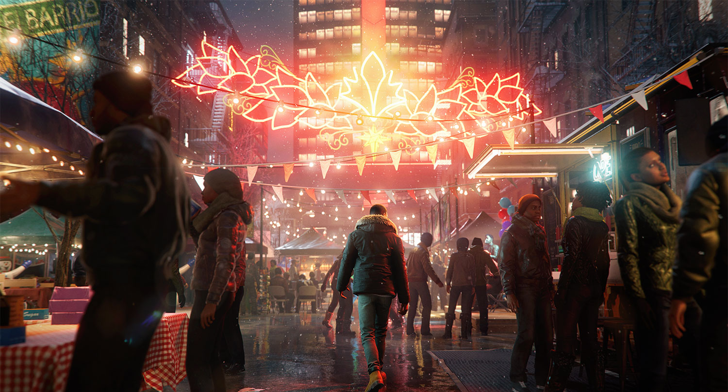 Jugar a Spider-Man: Miles Morales en PlayStation 5 es un placer visual. En la nueva consola, el juego ofrece dos modos distintos de configuración gráfica: la que genera una imagen 4K nativa con una serie de efectos visuales y trazado de rayos a 30 fotogramas por segundo; y Rendimiento, que sacrifica las herramientas de la otra vía por una velocidad constante de 60 fotogramas por segundo. También cumple una de las promesas iniciales de PS5: la ausencia de pantallas de carga. La experiencia es perfecta de principio a fin, y puedes comenzar a balancearte por Nueva York en menos de 10 segundos después de seleccionar el ícono del juego en el menú de la consola.