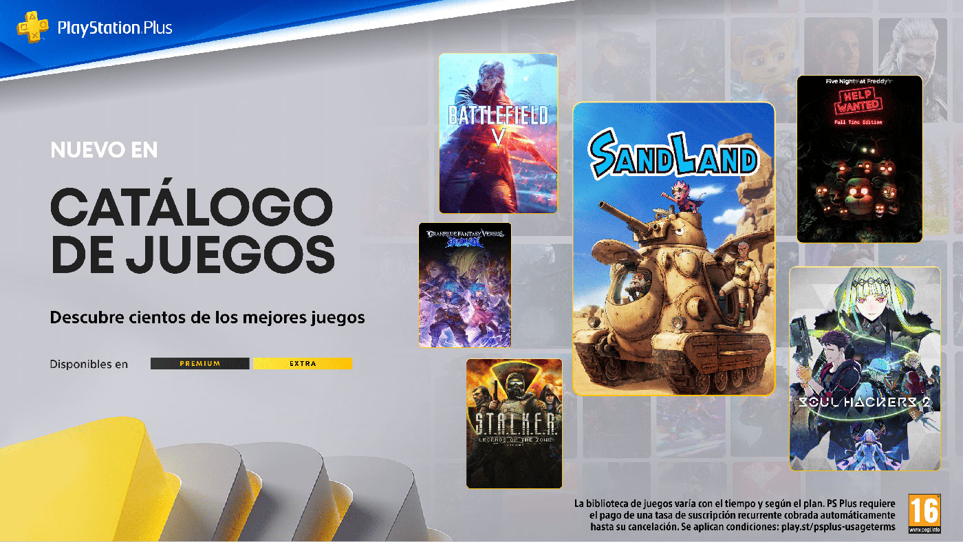 Como podrás comprobar en mayo no hay estrenos de juegos disponibles desde el primer día, a diferencia de lo que ocurrió en meses anteriores, como por ejemplo con ‘Blue Prince’, por lo que los suscriptores conocerán de sobra muchos de estos juegos. De hecho, los usuarios pueden descargar ‘Sand Land’ (basado en la serie de anime y manga del mismo nombre de Akira Toriyama), ‘Soul Hackers 2’, ‘Battlefield V’ (un buen aperitivo mientras esperamos la presentación oficial de ‘Battlefield Next’), ‘STALKER Legends of the Zone Trilogy’, ‘Granblue Fantasy Versus Rising’, el táctico ‘Humankind’ y un no tan clásico de PS2 como es el semidesconocido ‘Battle Engine Aquila’.