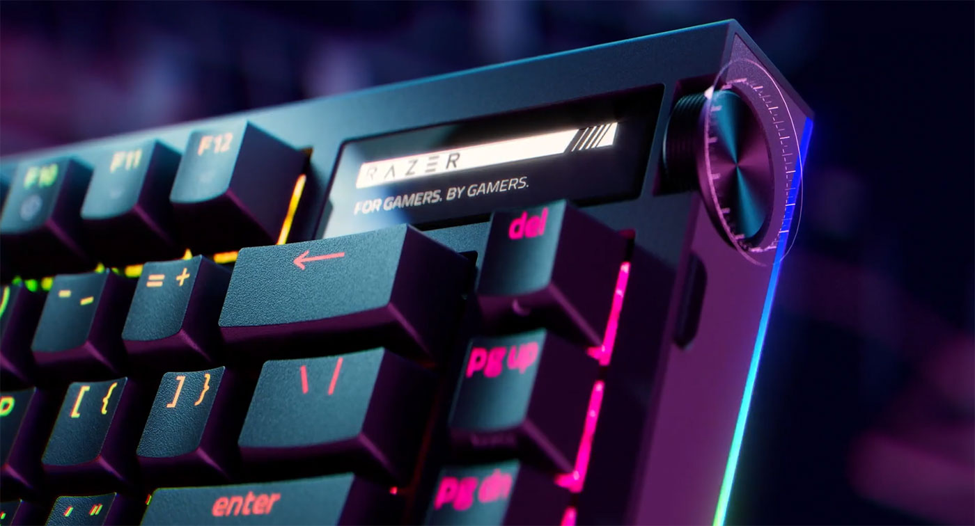 En la parte superior, el teclado presenta un rodillo multifuncional y botones específicos para ajustes rápidos de audio, multimedia y batería, todos ellos personalizables mediante el software Razer Synapse 4. Así, cada usuario puede ajustar estos controles según sus necesidades específicas durante el juego.