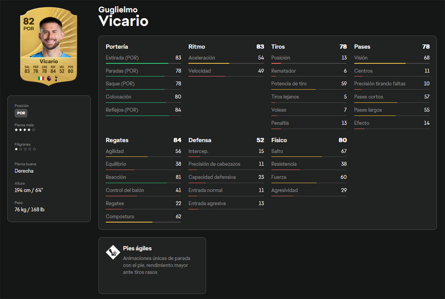 Si buscas ahorrar sin sacrificar calidad, Vicario es una excelente opción. El portero italiano es asequible y ofrece buenas estadísticas. Su juego de pies es fiable y suficiente para ser útil sin causar problemas. Además, tiene un potencial interesante para futuras evoluciones, ya que este año incluyen porteros. Merece la pena seguirlo de cerca.