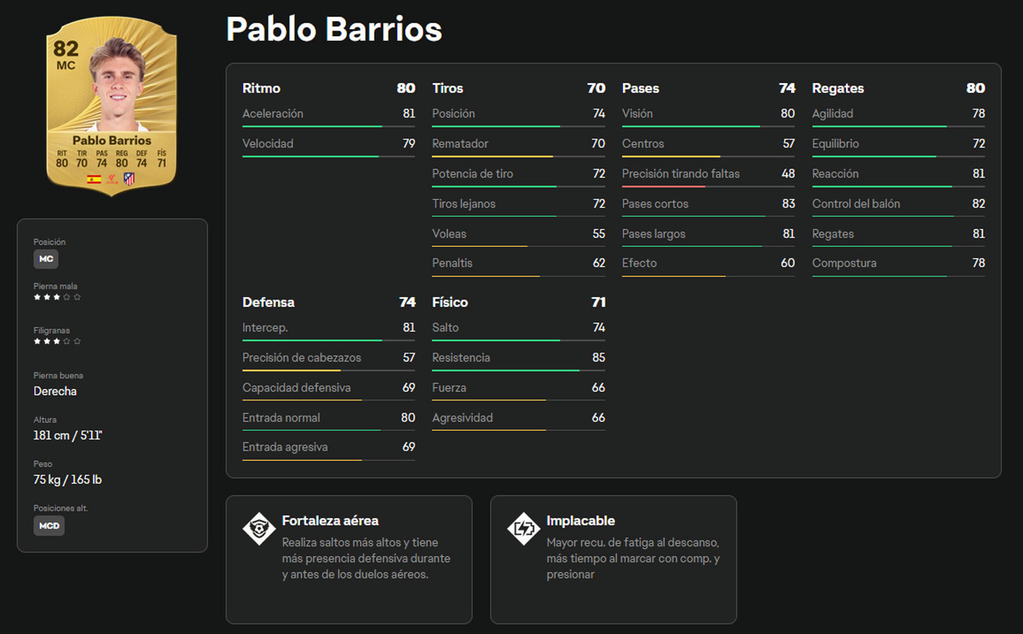 Pablo Barrios (Atlético de Madrid, MC) - GRL 82