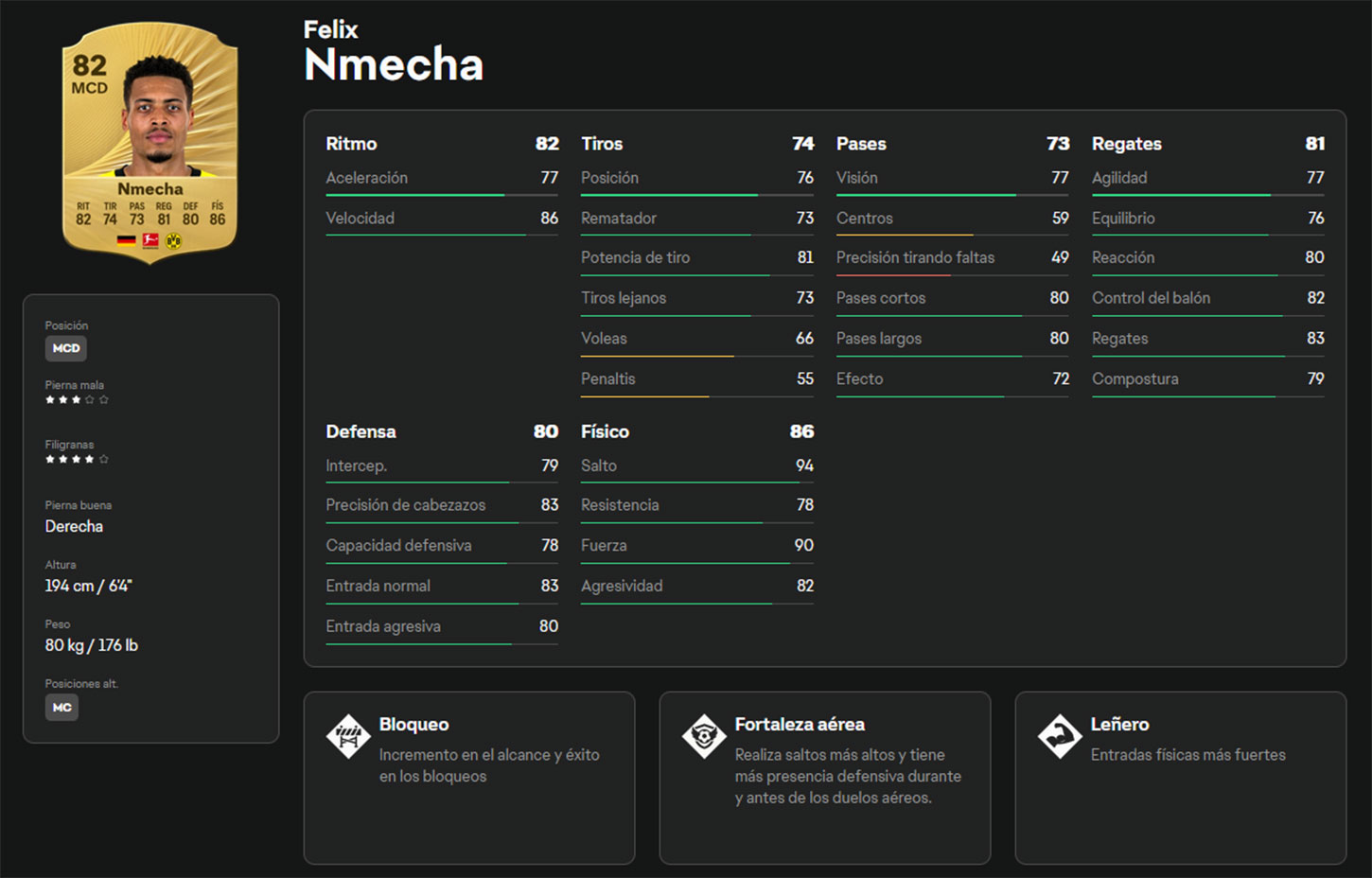 El centrocampista alemán del Borussia Dortmund es otra opción muy completa. Además de atributos equilibrados, sobresale por su capacidad de conducción, poco habitual en la posición. En estilos de juego es sólido y aporta trabajo defensivo, juego aéreo y determinación (con opciones de error) en la salida. Combinado con su finta y zancada, resulta difícil de detener. También en la recuperación tras pérdida. Convierte el mediocampo en zona de seguridad.