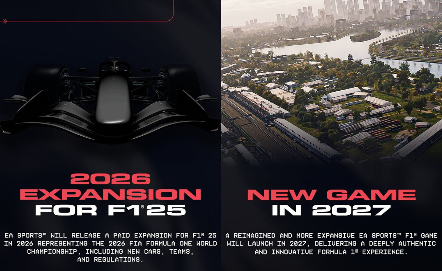 Lee Mather, director creativo senior de Codemasters explica que "tras el éxito comercial y de crítica de F1, el equipo de desarrollo está ampliando la experiencia con una expansión de pago." A renglón seguido justifica que "la actualización planeada por EA introducirá todos los cambios en equipos, pilotos, coches y reglamentos previstos para el Campeonato Mundial de Fórmula Uno de la FIA de 2026". Es decir, que el contenido es el mismo, pero la distribución y el precio cambiarán.